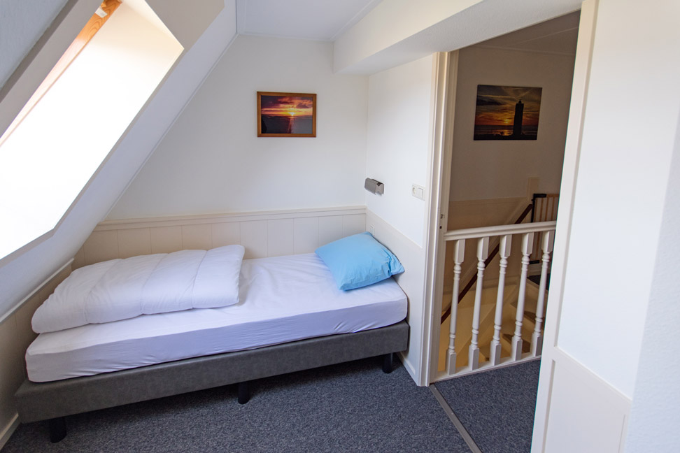 Op de bovenderdieping zijn twee slaapkamers met twee éénpersoons boxspring bedden voorzien van éénpersoonsdekbedden.